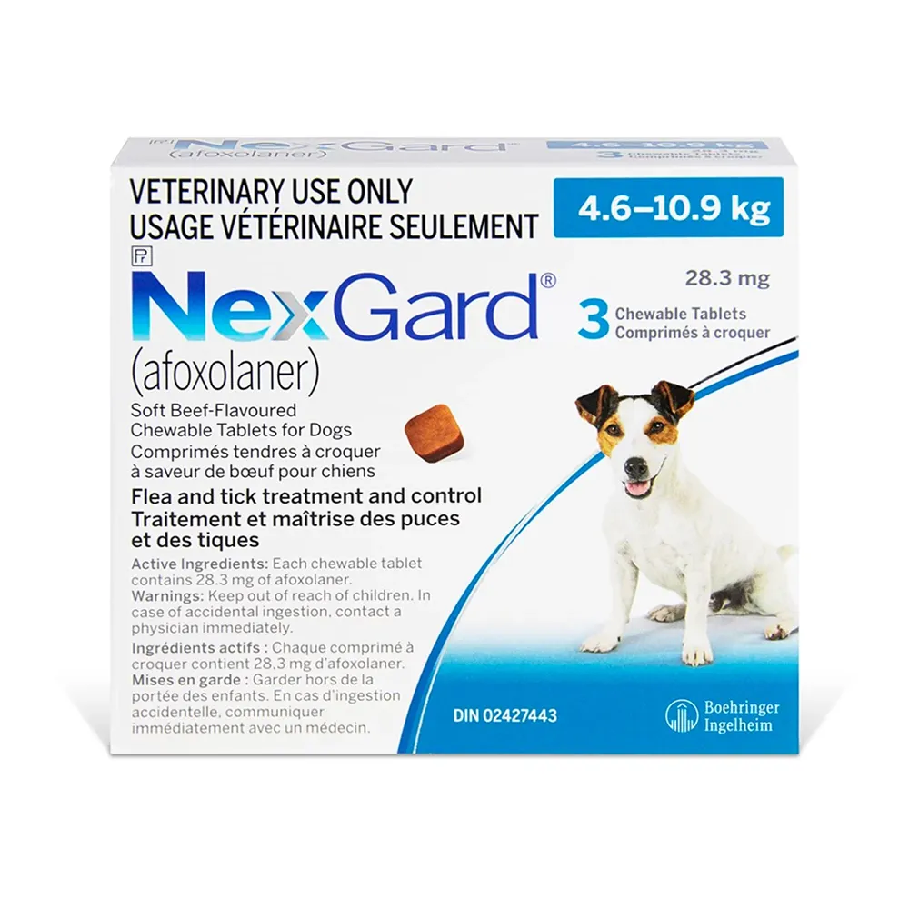 Boehringer Ingelheim NexGard Soft Chewable Tablets 3 Chewable Tablets Blue/Bleu 4.6 – 10.9 kg